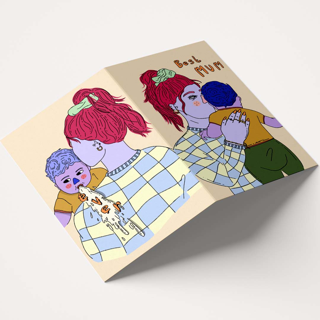 How better to wish a new mum a Happy Mother's Day than with a cute card with a baby vomming?