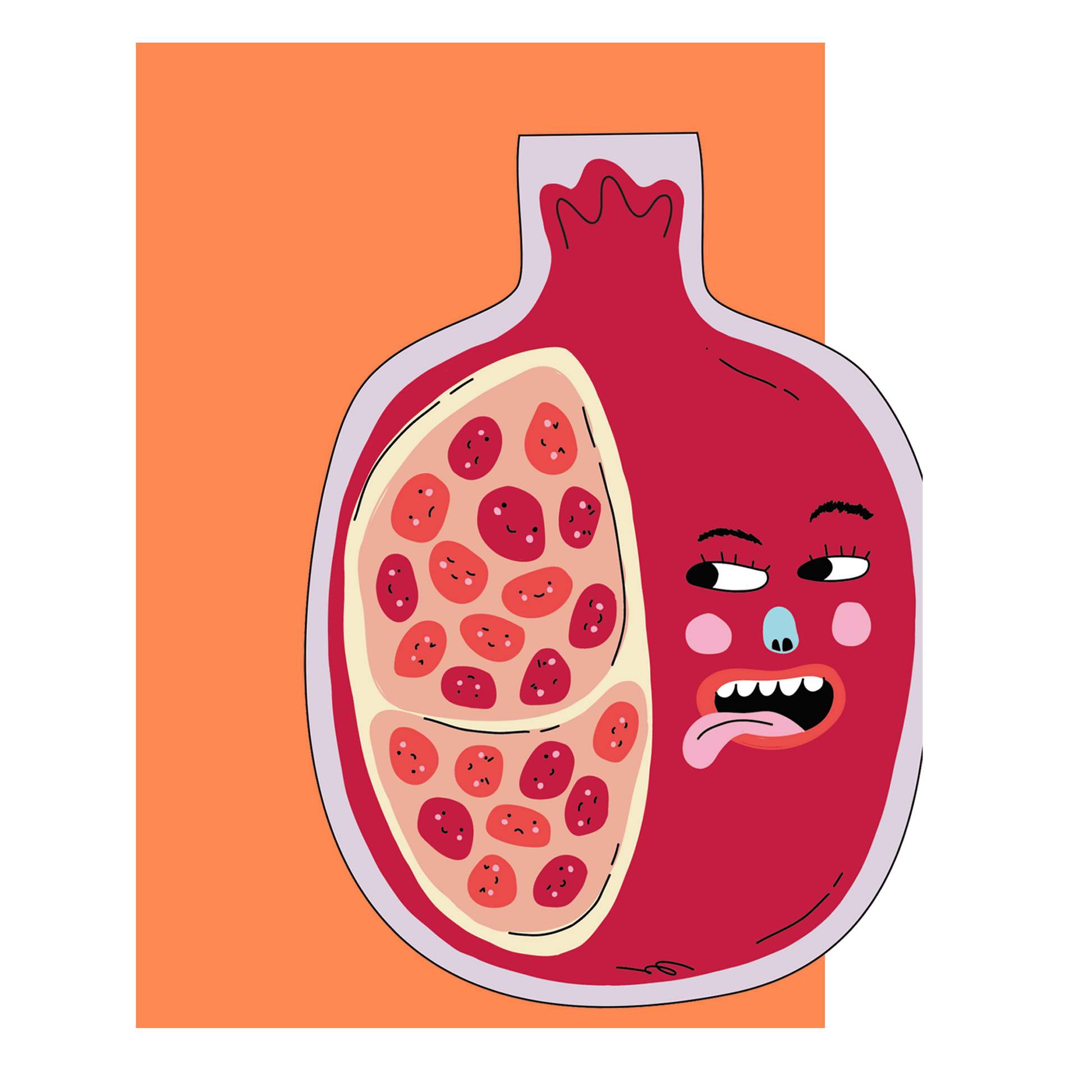 Hey Pomegranate greeting card is part of our new 'foodie collection' a wildly expressive range of die-cut cards starring fruits, veggies, and pantry faves with bold personalities. These cheeky snack core characters are