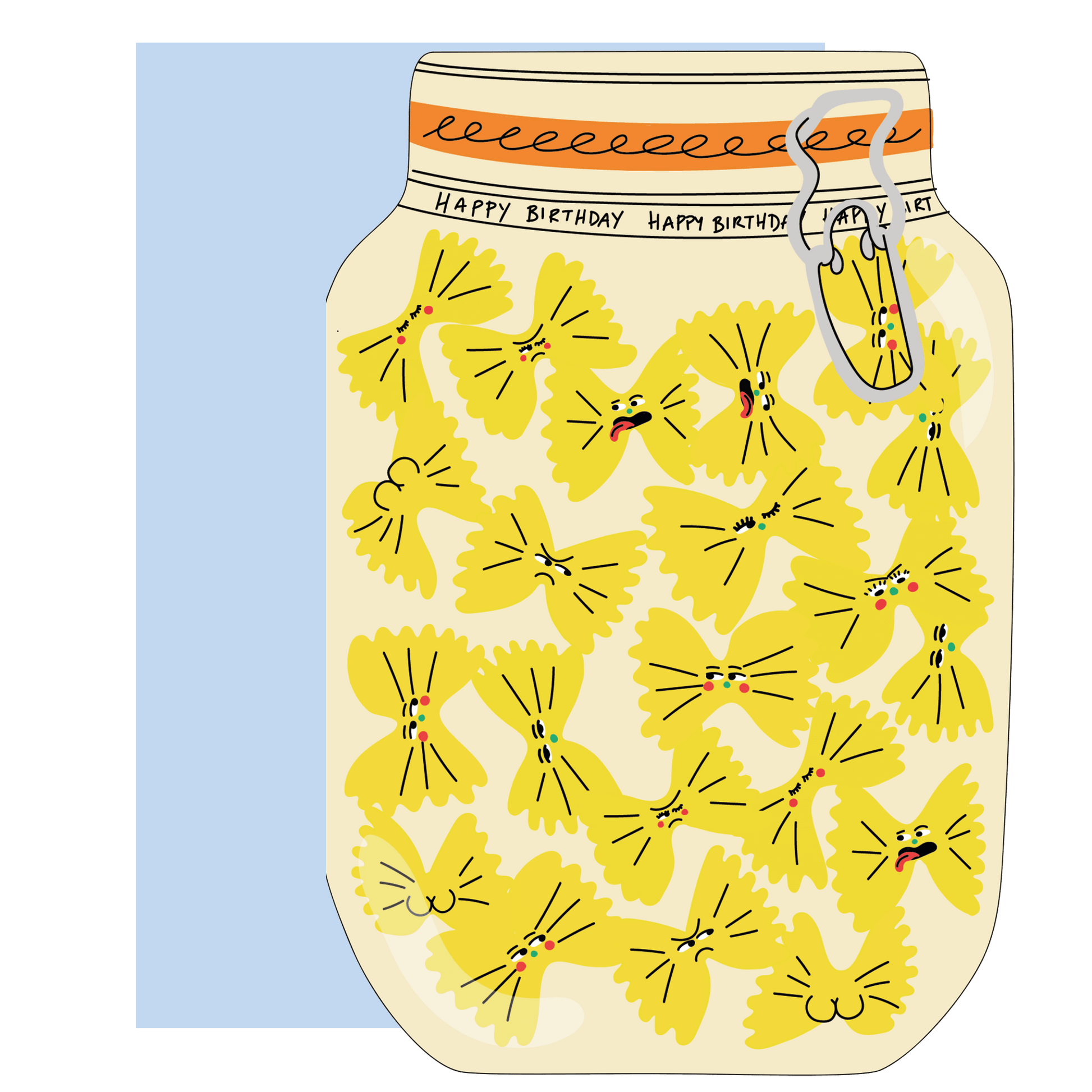 Pasta jar greeting card is part of our new 'foodie collection' a wildly expressive range of die-cut cards starring fruits, veggies, and pantry faves with bold personalities. These cheeky snack core characters are